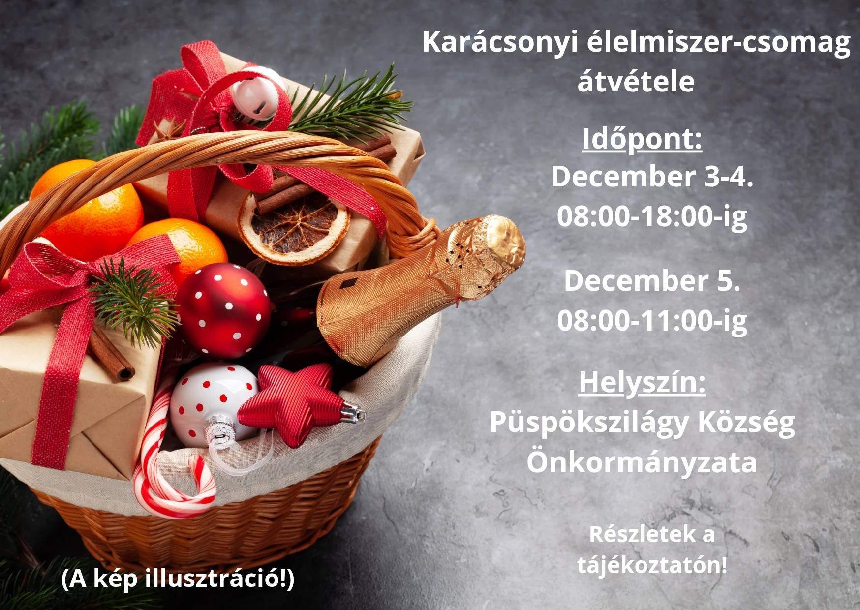 Örömmel értesítjük a lakosságot, hogy az idei karácsonyi élelmiszercsomagok átvehetők a Polgármesteri Hivatalban az alábbi időpontokban: December 3–4. – 8:00–18:00 December 5. – 8:00–11:00 Kérjük, hogy