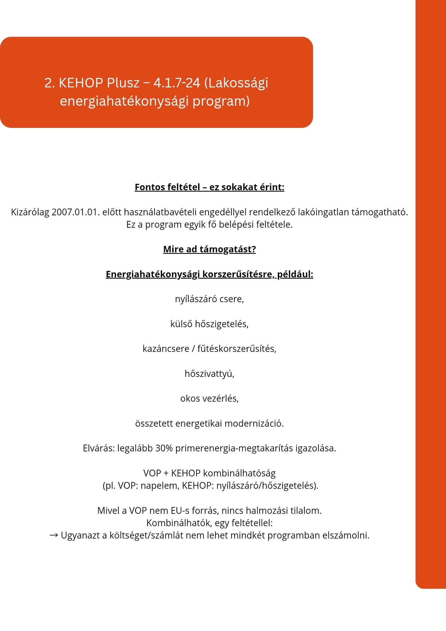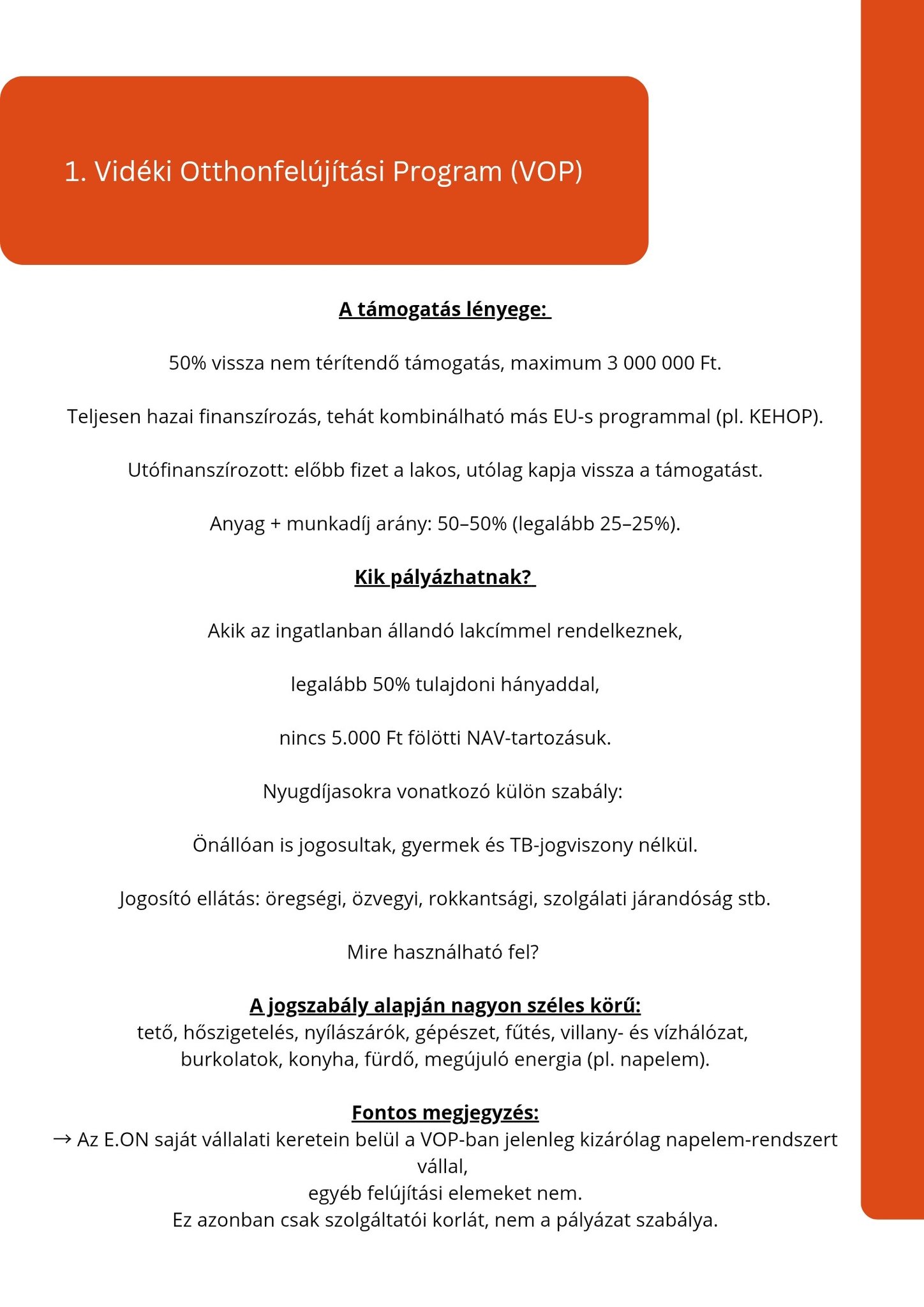 Vidéki Otthonfelújítási Program (VOP) és a KEHOP Plusz – 4.1.7-24 energiahatékonysági pályázat.
